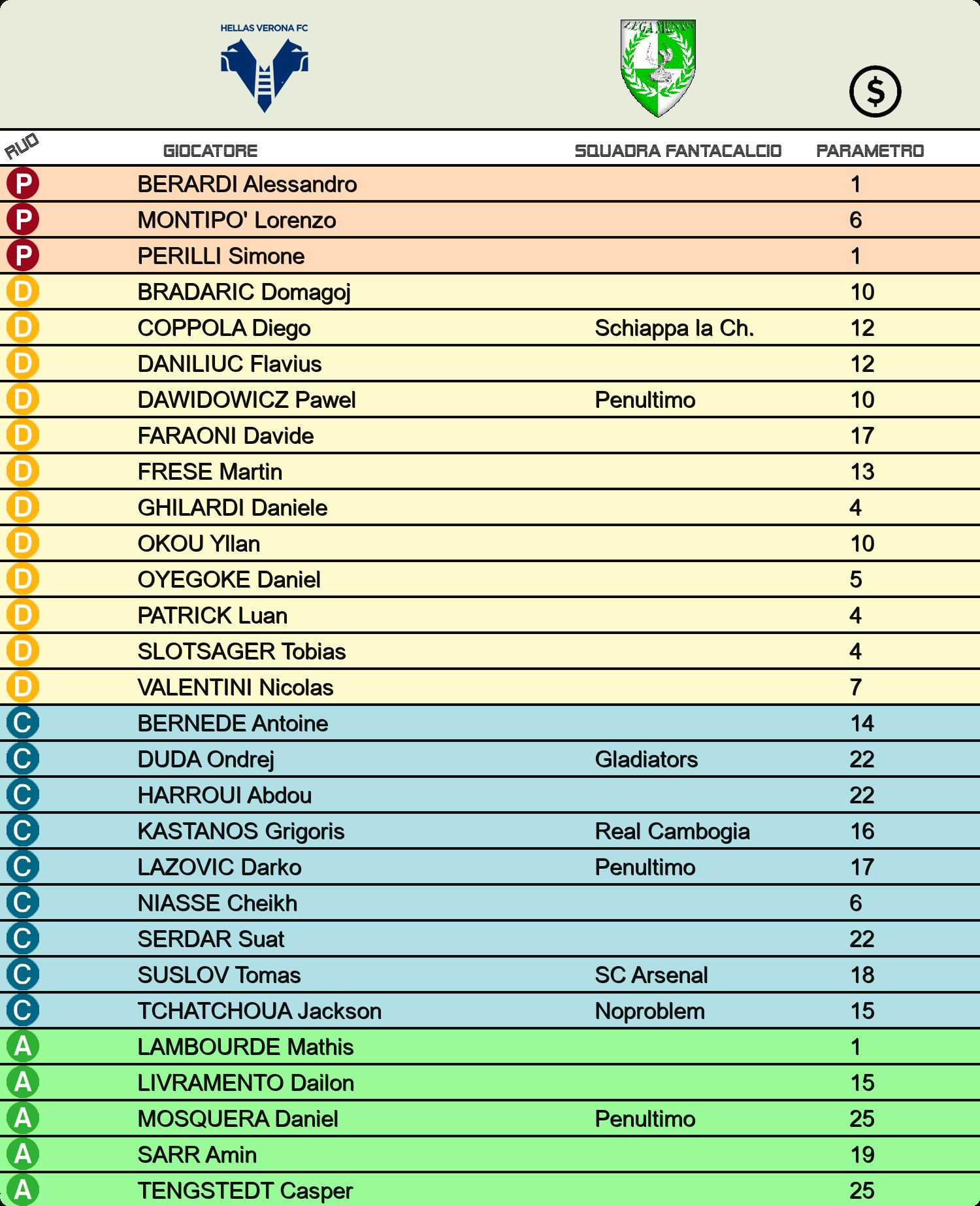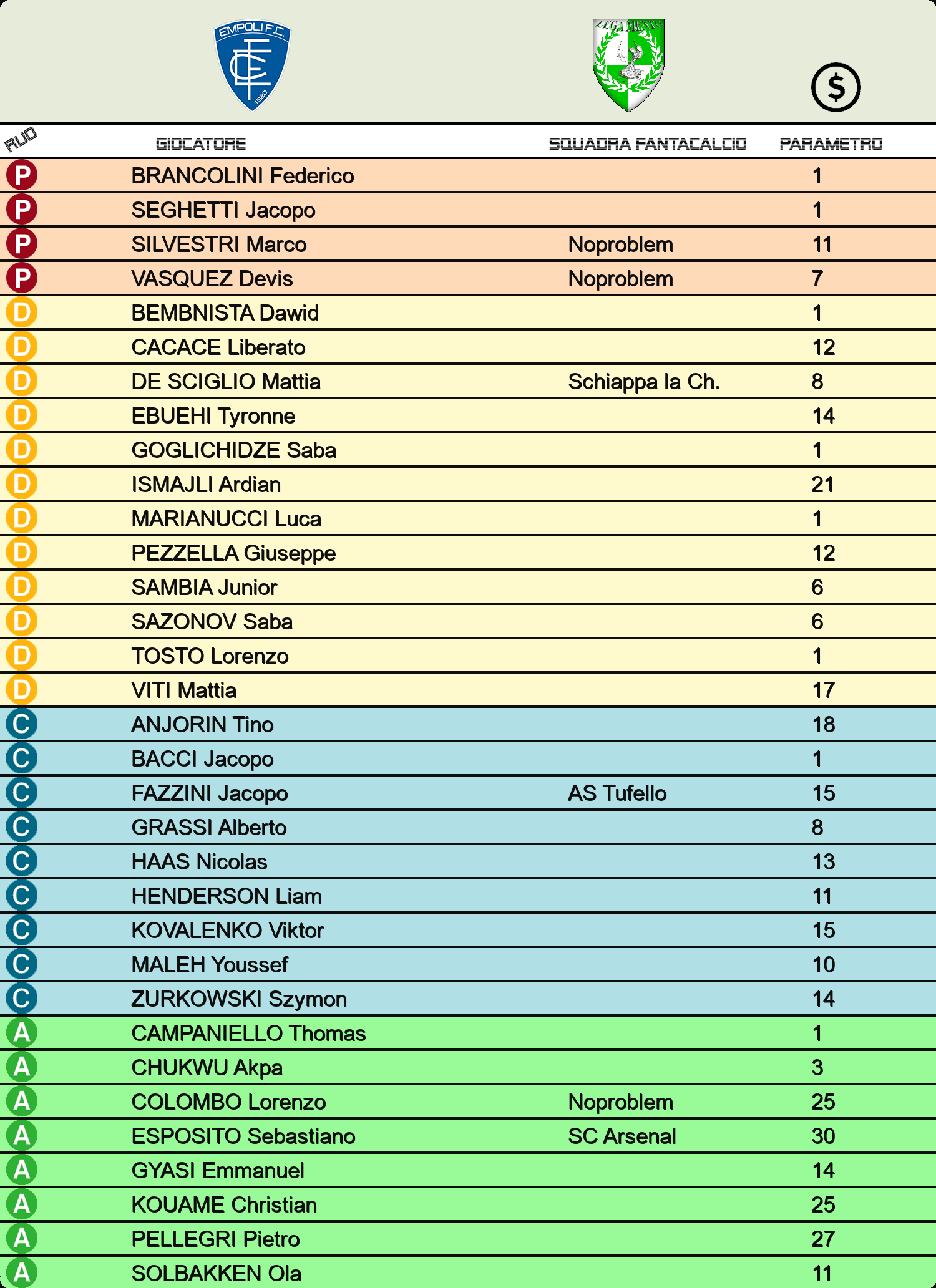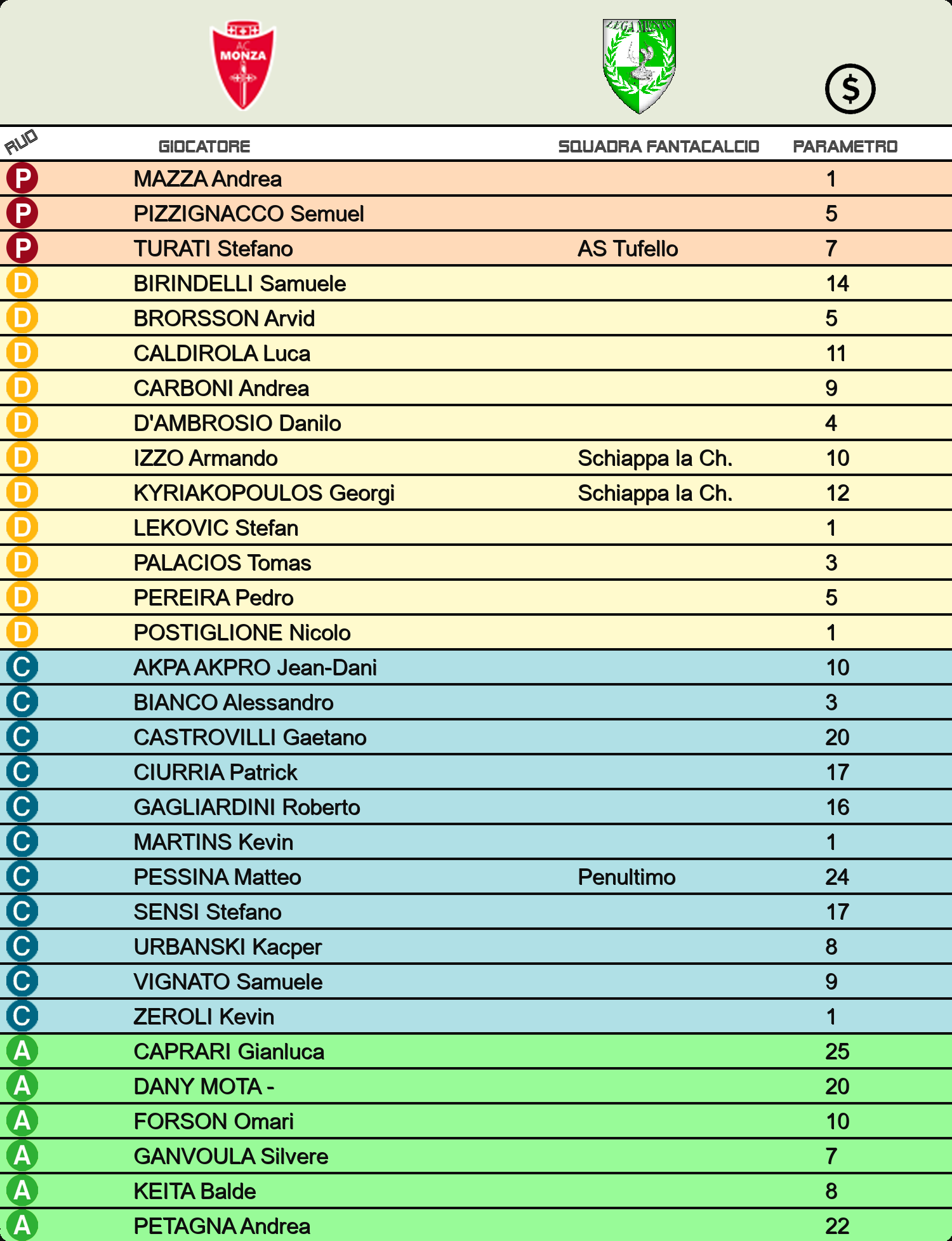 SELEZIONA LA SQUADRA