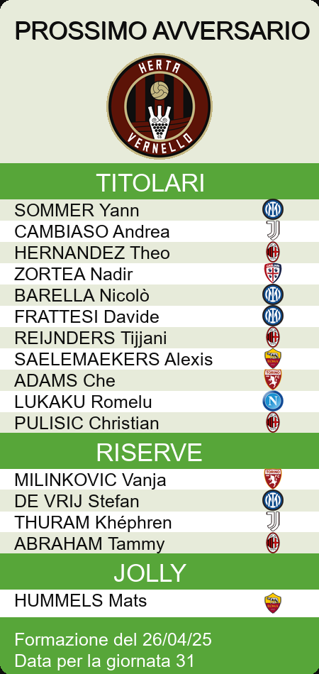 HOME LEGA esauritim MEDIE VOTI PROBABILI GAZZETTA PROBABILI FANTACALCIO PROBABILI CORRIERE