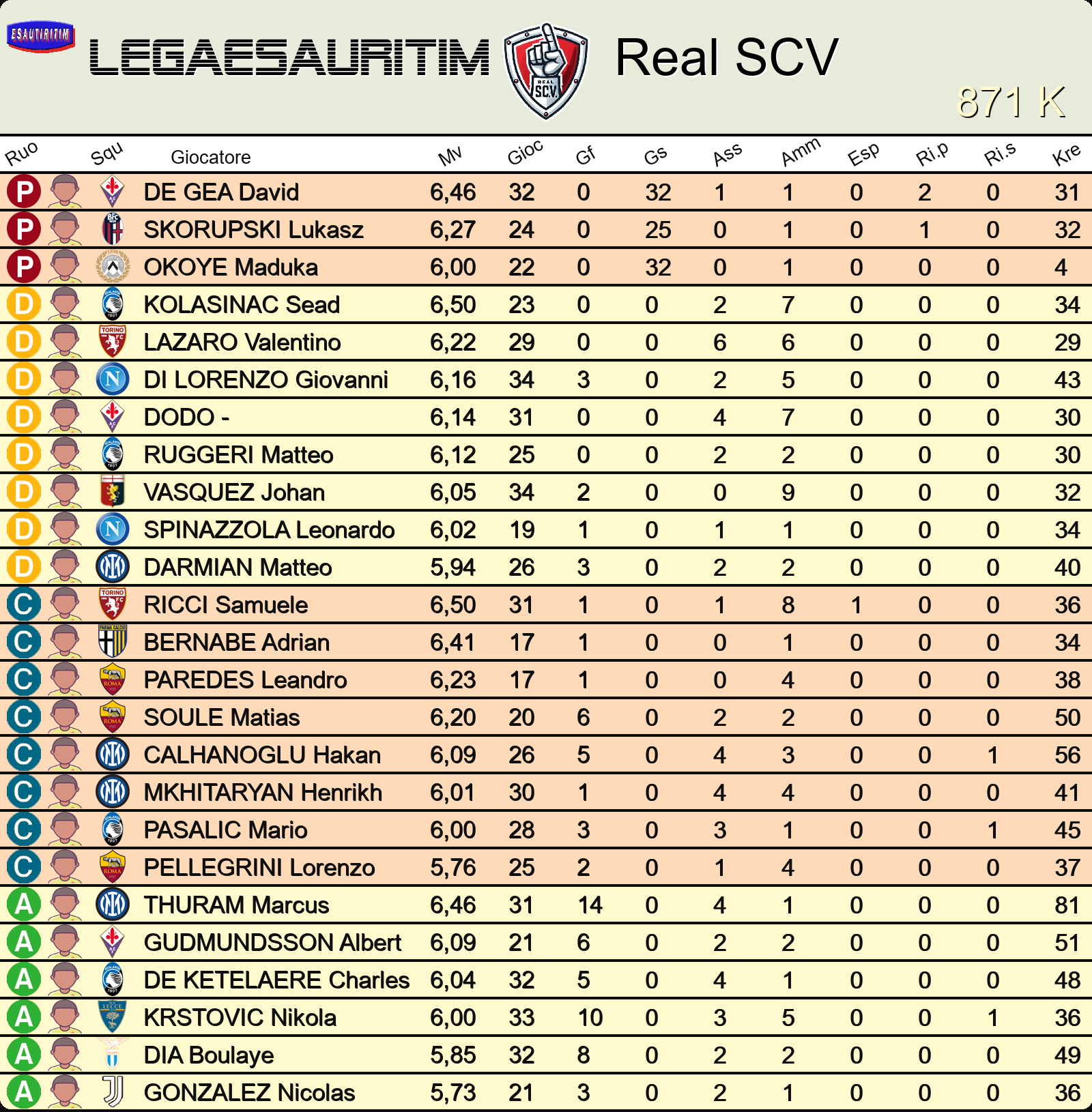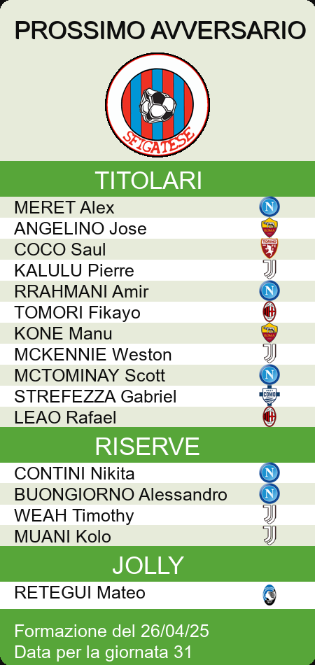 HOME LEGA esauritim MEDIE VOTI PROBABILI GAZZETTA PROBABILI FANTACALCIO PROBABILI CORRIERE