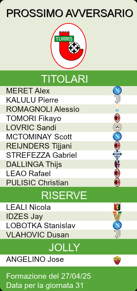 HOME LEGA junior MEDIE VOTI PROBABILI GAZZETTA PROBABILI FANTACALCIO PROBABILI CORRIERE