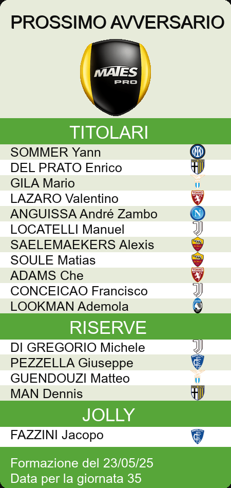 HOME LEGA junior MEDIE VOTI PROBABILI GAZZETTA PROBABILI FANTACALCIO PROBABILI CORRIERE