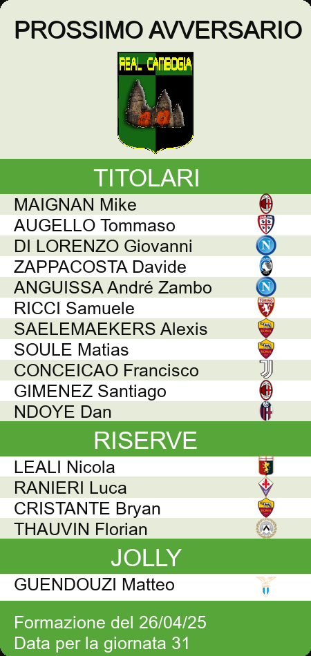 HOME LEGA mento MEDIE VOTI PROBABILI GAZZETTA PROBABILI FANTACALCIO PROBABILI CORRIERE