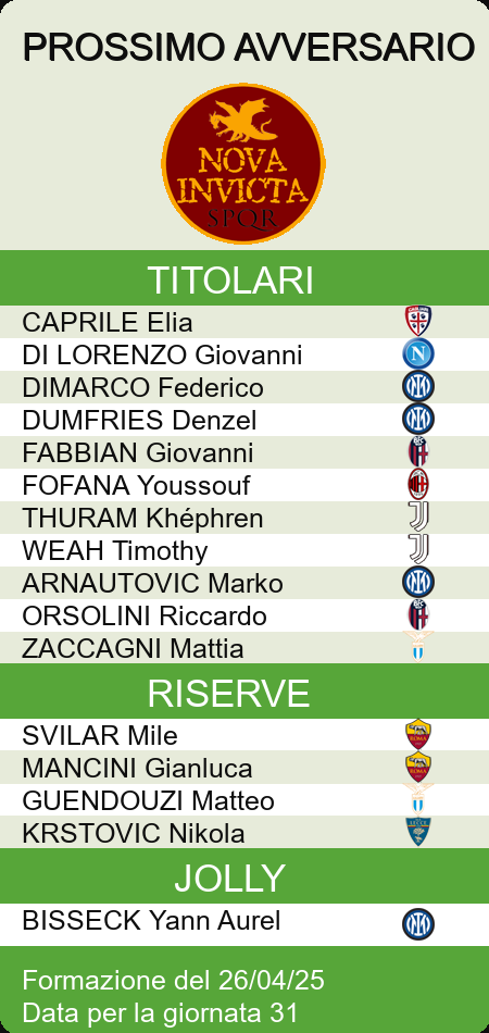 HOME LEGA zzate MEDIE VOTI PROBABILI GAZZETTA PROBABILI FANTACALCIO PROBABILI CORRIERE