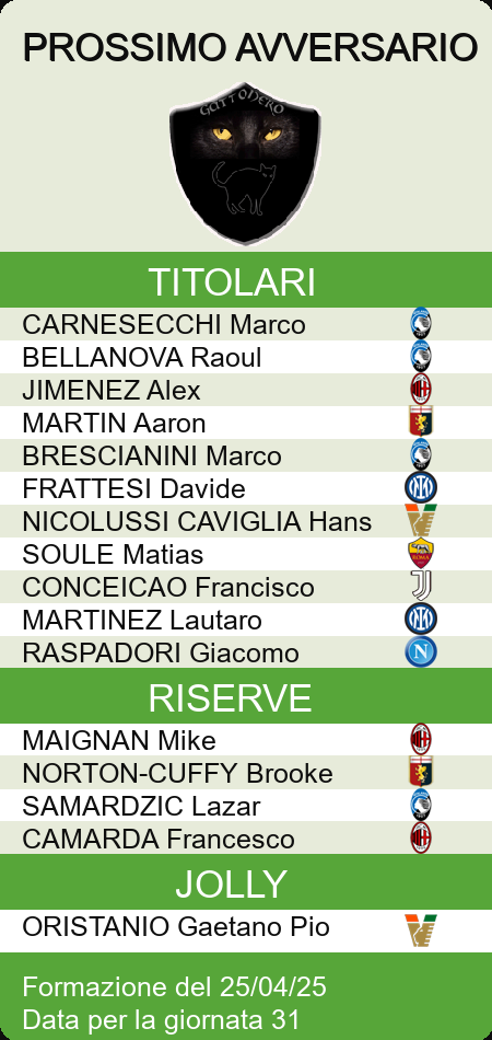 HOME LEGA zzate MEDIE VOTI PROBABILI GAZZETTA PROBABILI FANTACALCIO PROBABILI CORRIERE